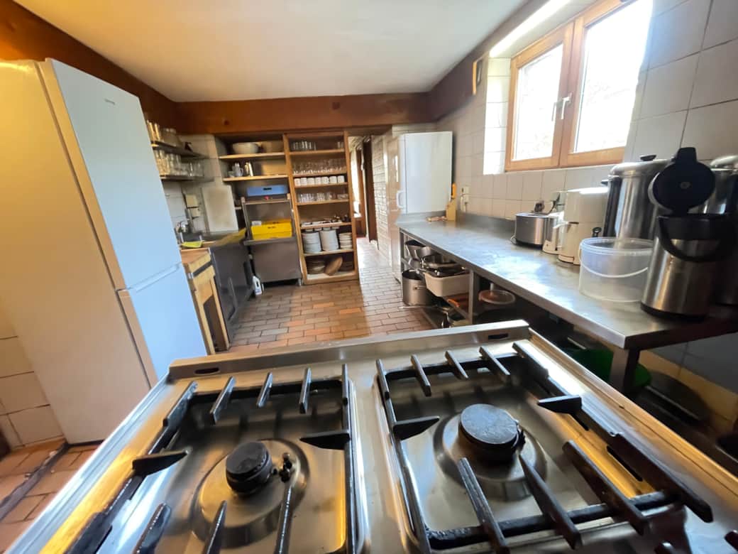 Im Erdgeschoss findet ihr eine geräumige Gastroküche sowie einen großen und einen kleinen Aufenthaltsraum. Gemütlichkeit verspricht auch die Stube mit einem Kachelofen und einem bequemen Doppelbett.